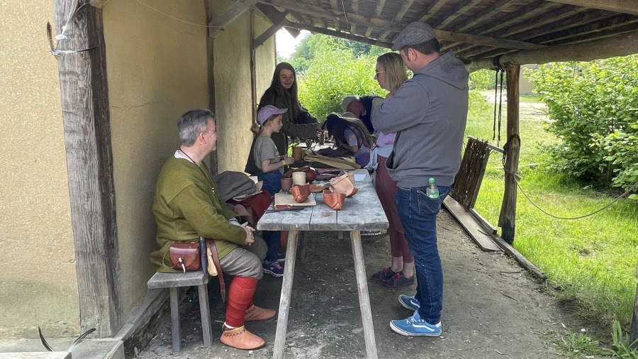 Wie praktisch und beliebt Ledertäschchen bereits im Frühmittelalter waren, erfahren Sie am besten, wenn Sie selbst bei unseren Handwerkern zu Nadel und Faden greifen und sich ein kleines Täschchen nähen. Der Bogenschütze lässt Sie genauso mitmachen wie der Specksteinschnitzer oder der Bernsteinschleifer. Außerdem können Sie mit unserem Wikingerschiffnachbau auf dem Wallsee auf "kleine Fahrt" gehen und einen sturmfreien Eindruck davon bekommen, wie sich die Händler auf ihren Reisen gefühlt haben.