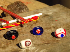 Kinder können dort mit gepolsterten Schwertern das Geschick mittelalterlicher Kämpfer üben. Für die Schmuckliebhaber stellen die Glasperlenmacher die Arbeit nicht ein, sondern laden zum Glasschmelzen und Perlenwickeln am offenen Feuer ein. Das und noch einiges mehr kann man bei uns entdecken und probieren.