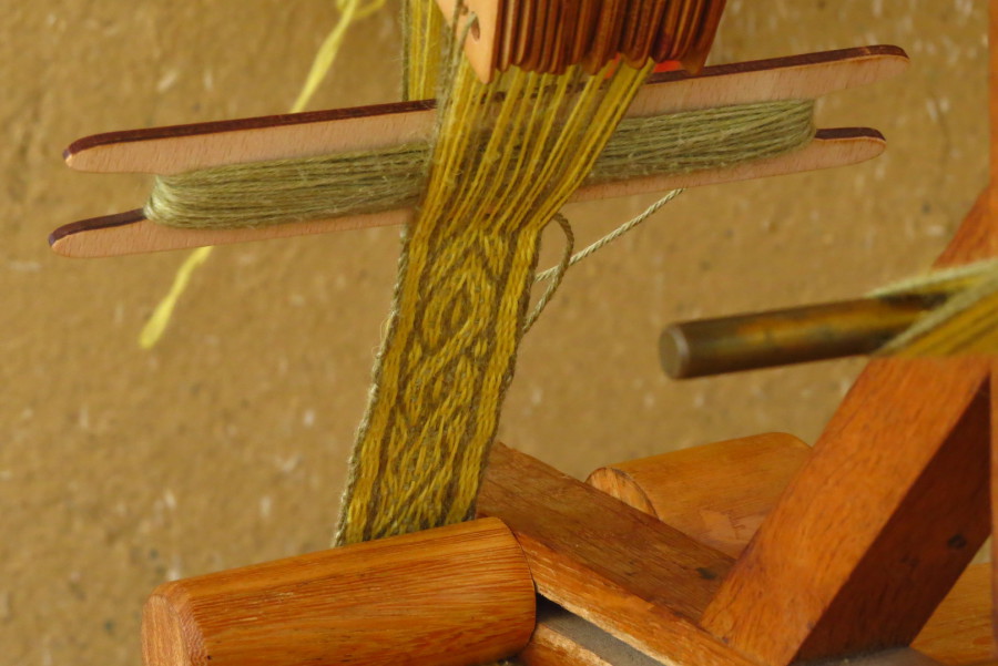 Wer einen Schritt weiter ins Mittelalter gehen möchte, kann Holzbrettchen und authentische Wollgarne, die von unserer Museumsfärberin mit Pflanzen gefärbt wurden, natürlich auch während des Kurses erwerben.
